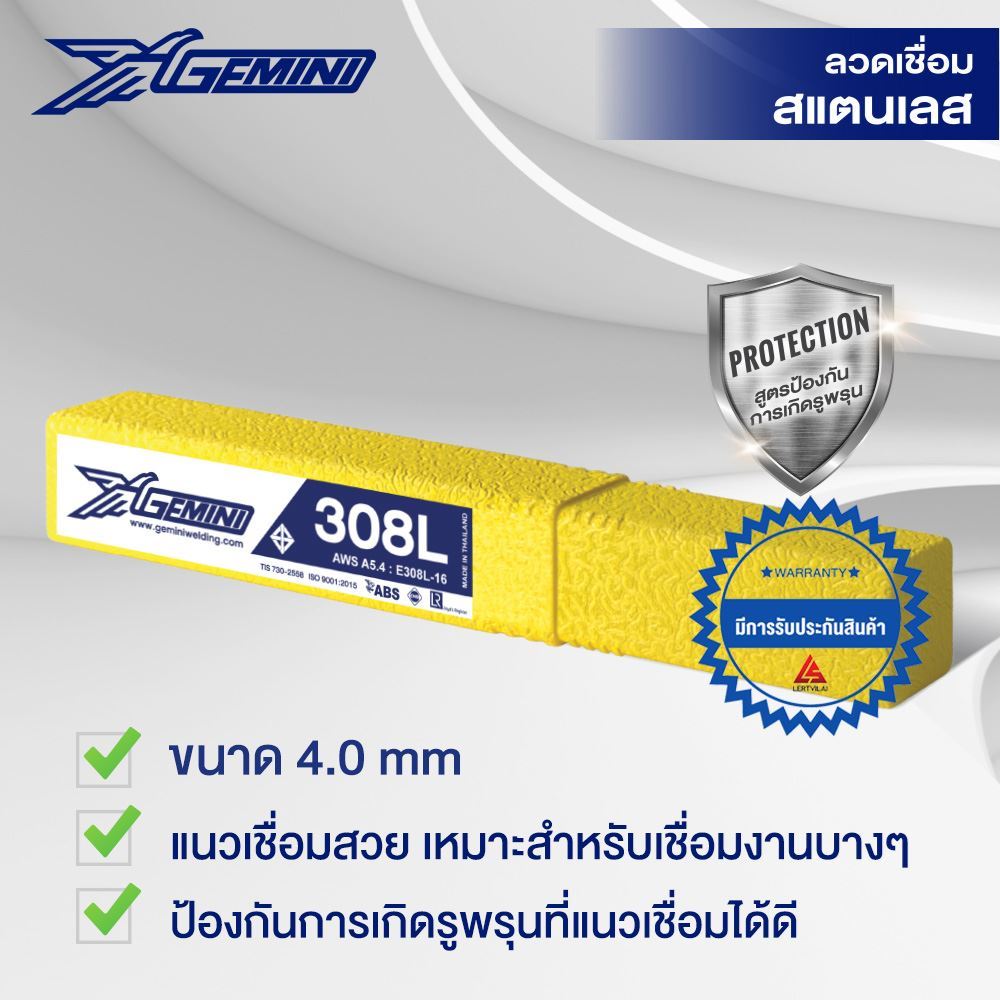 ลวดเชื่อม สแตนเลส GEMINI 308L-16 4.0 mm หลอดบรรจุ 1 KG